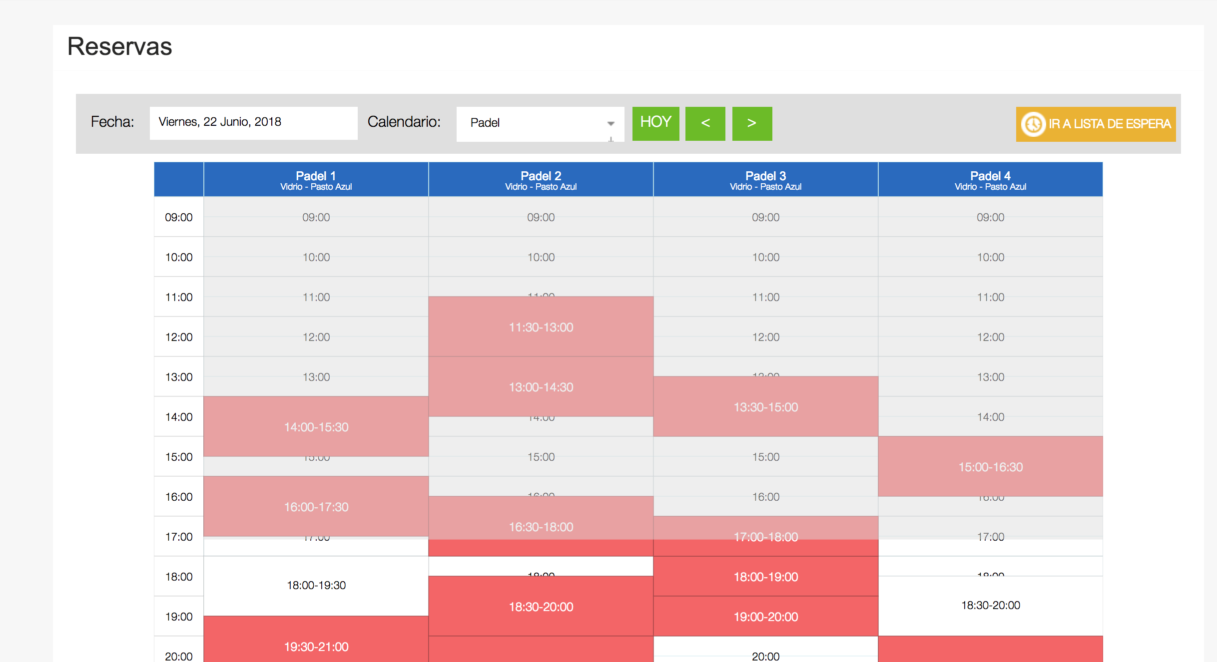 - Se permitirá 10 minutos de cortesía, en caso de no haber reserva en el horario posterior. A partir de entonces se cobrará en tramos  de 30 minutos en Pádel y 20 minutos en Racquetball. Siendo los clientes responsables de llevar la cuenta de la hora.