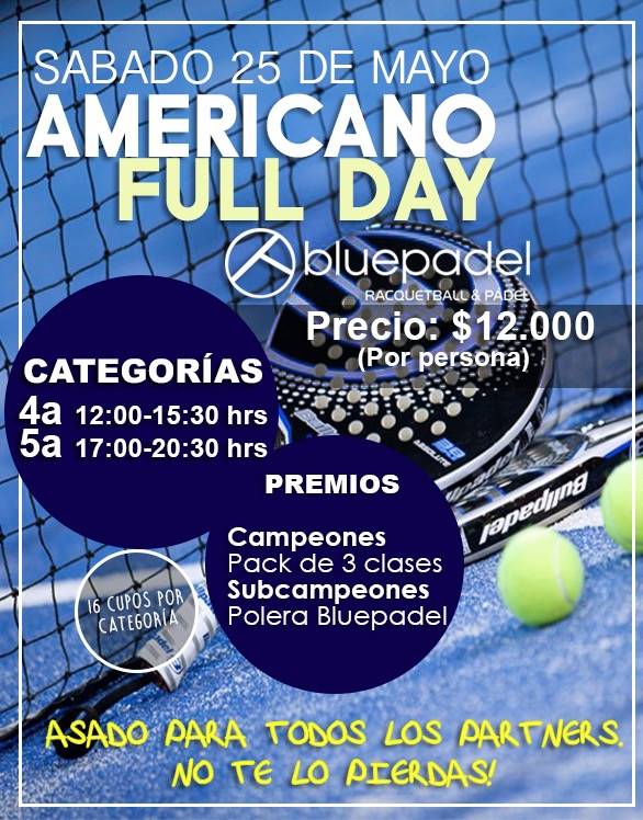 El torneo americano se caracteriza por ser un torneo divertido y social. Además, es un torneo individual!! Todos los participantes juegan con y contra todos los partners, como rival y compañero.