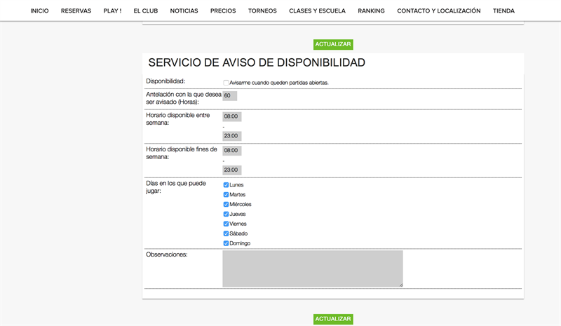 4. Acceso a toda tu informacion relativa a nuestro complejo deportivo: Packs , informacion de contacto, nivel , tus amigps del padel o racquetball, etc (Nuevo)