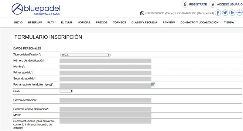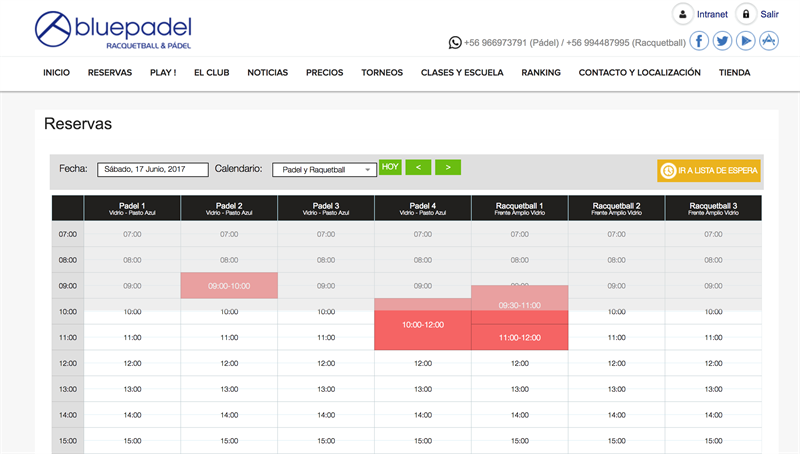 1.  Reservas Web www.bluepadel.cl   (Mejora la versión Actual)