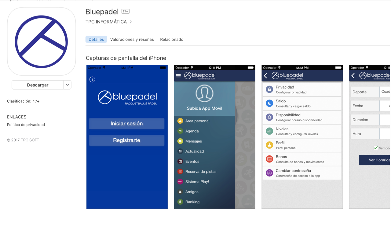 7. Apps de Celular Smartphone   IPhone y Android, para efectuar en forma mas directa y simple todas las funciones anteriores. Además podrás comunicarte facilmente  con tus amigos del deportes y con bluepadel para todo tipo de actividad (reservas, armados de partidos , etc).